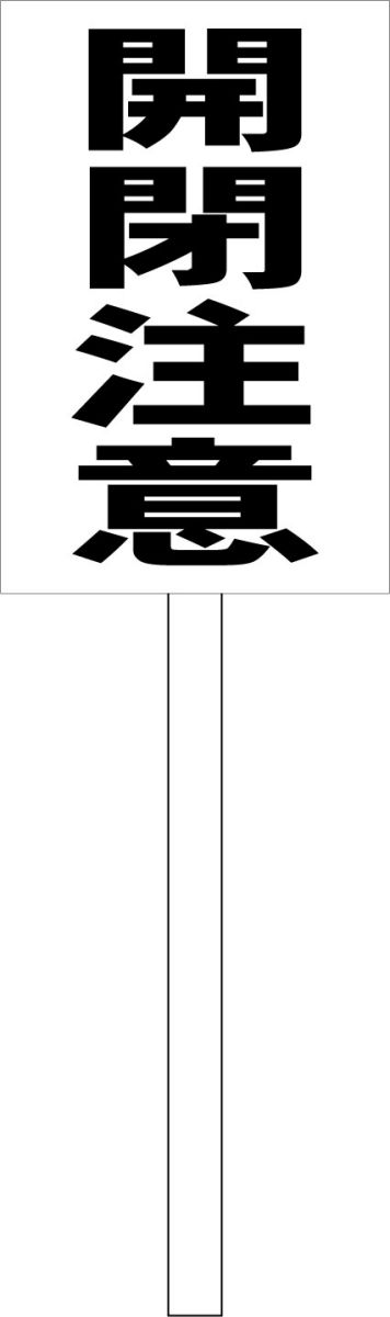 シンプル立札看板 「開閉注意(黒)」工場・現場 屋外可(面板 約H45.5cmxW30cm)全長1m