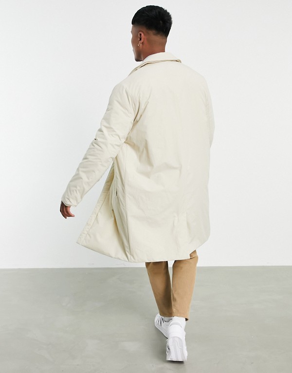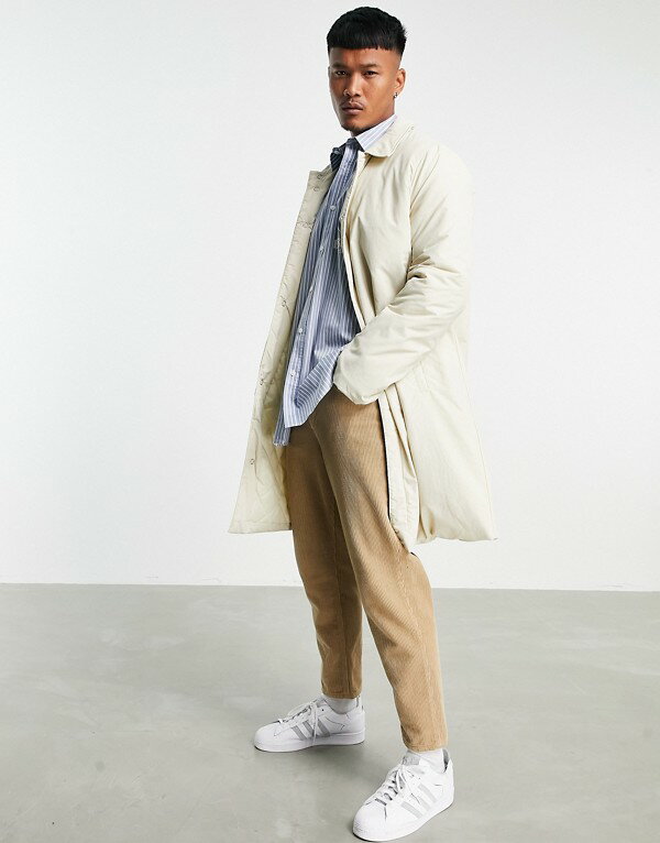 エイソス ASOS asos キルティングの裏地が付いたベージュのASOSDESIGNトレンチコート アウター メンズ 男性 インポートブランド 小さいサイズから大きいサイズまで