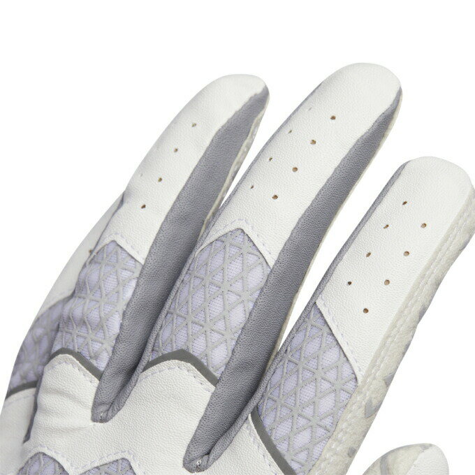 ■カラー:WH/SV ( GL8866 ホワイト/ハロシルバー ) ■サイズ:21cm、22cm、23cm、24cm、25cm、26cm ■素材:ポリウレタン60%、ポリエステル40% ( イミテーションレザー ) ■特徴: ・カーブをつけた指部分 ・指の関節部分に柔軟性のあるストレッチメッシュ ・ソフトな着用感 ・面ファスナーの開閉部 ・手のひら部分にシリコングリッププリントを配したマイクロファイバースエード生地を使用 ・平側のカオスグリップが滑りをおさえ、クラブをしっかりとホールドすることで、パワーをボールへ伝える。