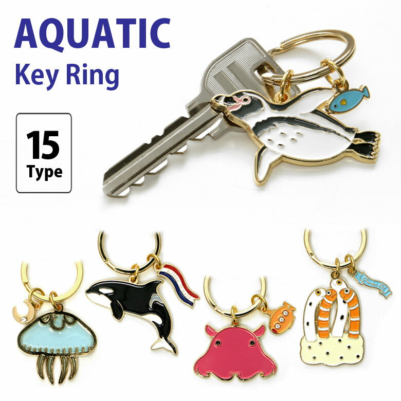 全15種 アクアチック キーリング 鍵 かわいい リング 便利 キーホルダー グッズ くらげ ジンベエザメ あざらし シロイルカ ゆるかわ シャチ アクセサリー| 動物 可愛い チャーム キーチャーム バッグ ストラップ アニマル ペンギン サメ チンアナゴ キーストラップ カギ かぎ