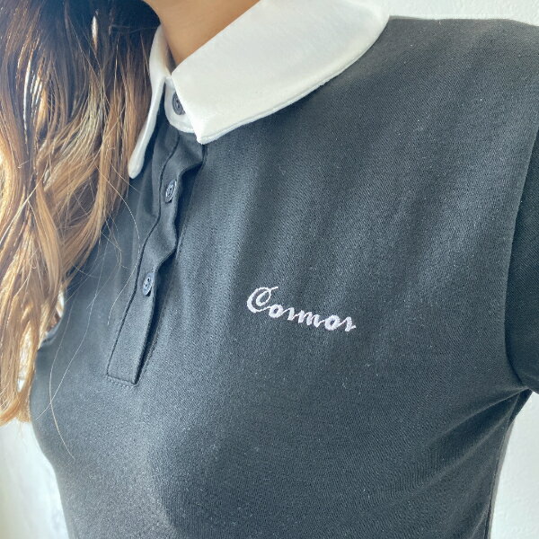 モノトーンショートポロシャツ C2202-01 韓国ゴルフウェア ゴルフウェア レディース 安い プチプラ 黒 ポロシャツ シンプル トップス ゴルフ女子 可愛い 韓国ブランド